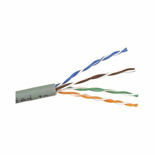 Кабель витая пара U/UTP 5e кат. 4 пары TWT TWT-5EUTP 24AWG(0.51 мм), медь, одножильный (solid), внутренний, PVC, серый, уп/305м