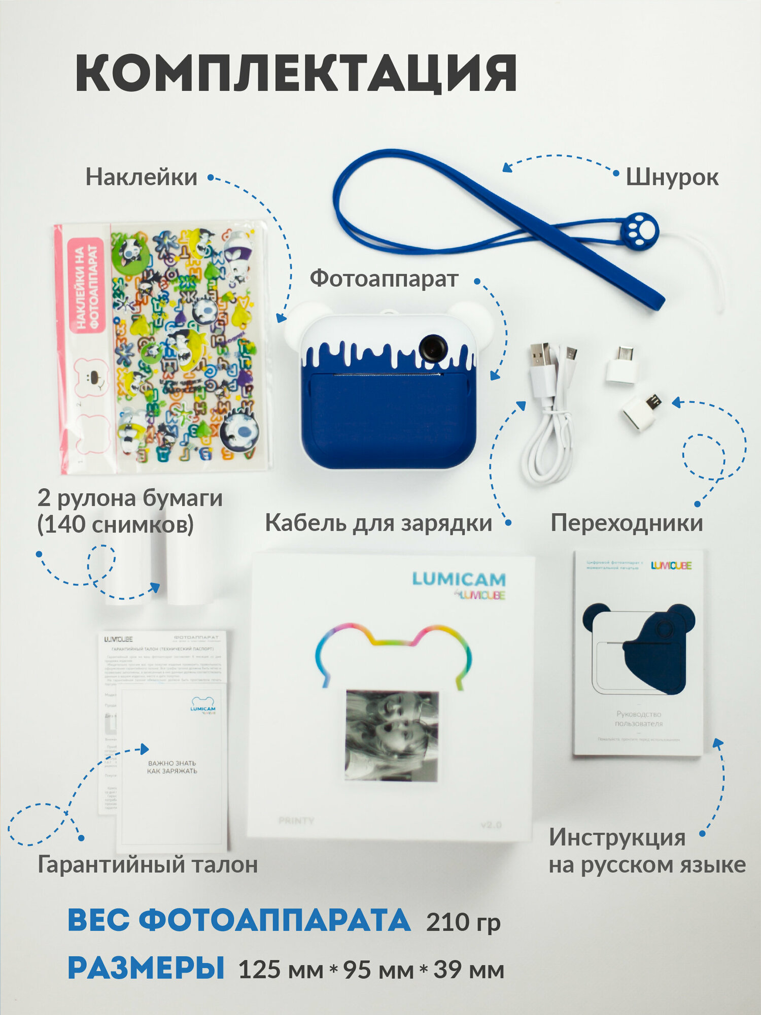 Детский фотоаппарат моментальной печати LUMICUBE Lumicam DK04, синий