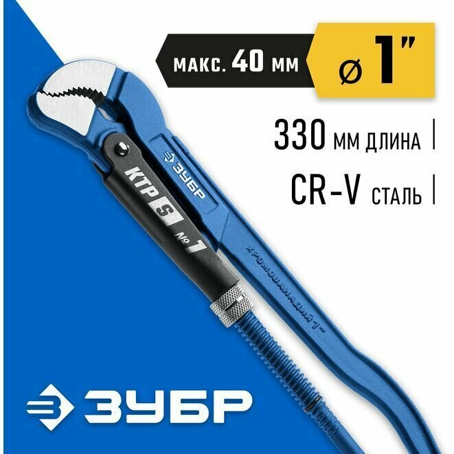 ЗУБР №1, изогнутые губки, ключ трубный КТР-S 27336-1_z02 Профессионал