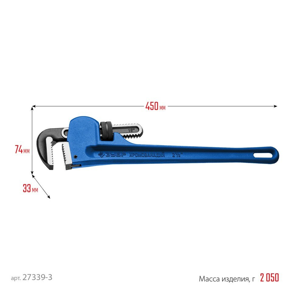 Купить Ключ разводной трубный 2.5 дюйма (78 мм) ЗУБР