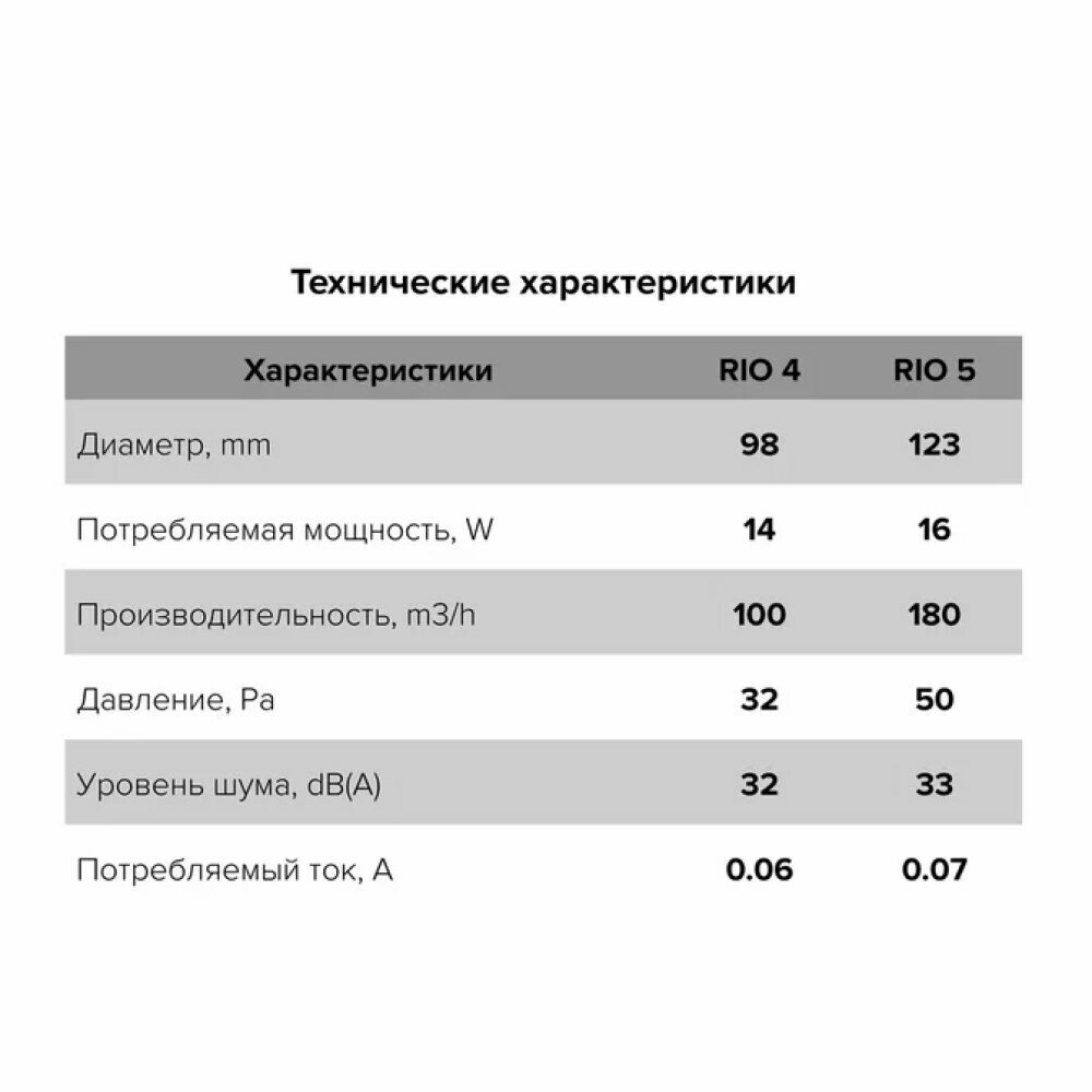 RIO 5C вентилятор вытяжной бесшумный c обратным клапаном на шарикоподшипниках D123