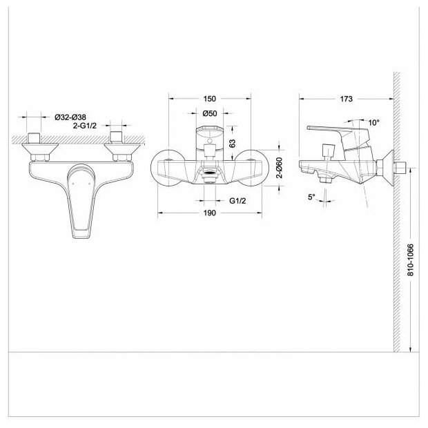 Смеситель Bravat Line F65299BM-B-RUS для ванны с душем черный