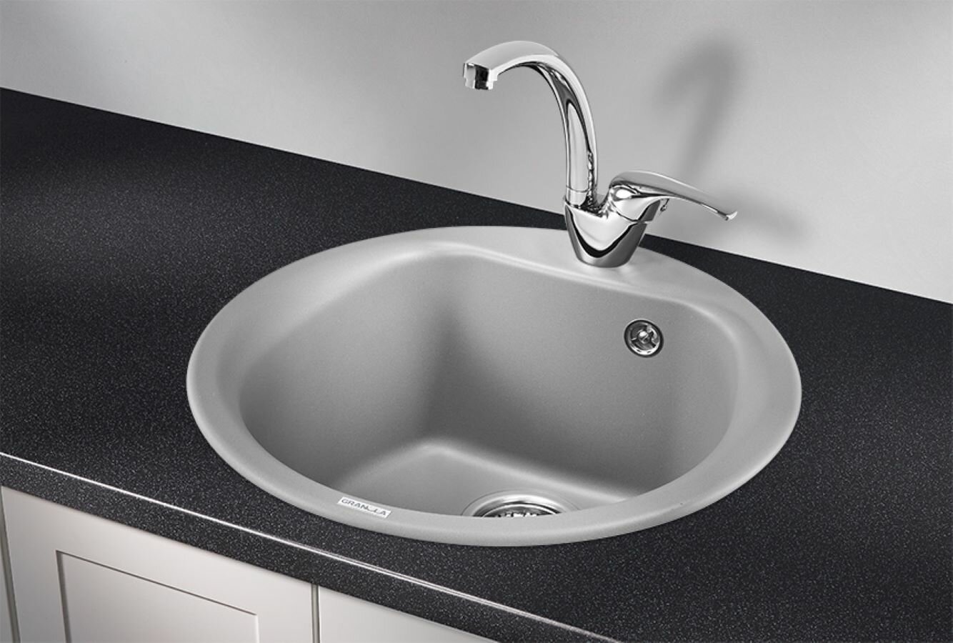 Кухонная мойка кварцевая Granula GR-5101 односекционная круглая, врезная, чаша 440x385, цвет графит (5101bg)