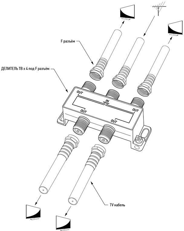 PROCONNECT Делитель ТВна 4 выхода F разъём 5-1000 МГц 05-6023 интересное: