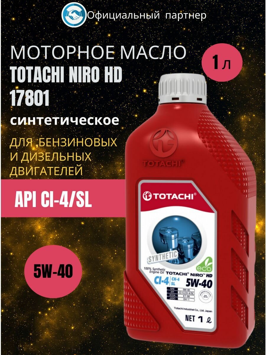 TOTACHI 17801 Масло моторное TOTACHI NIRO HD Synthetic API CI-4/SL 5W-40 пласт. 1л
