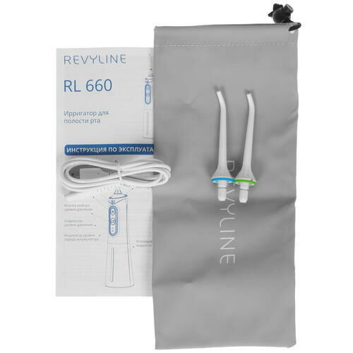 Ирригатор для полости рта REVYLINE RL 660, портативный, емкость резервуара 0,2 л, 2 насадки, белый