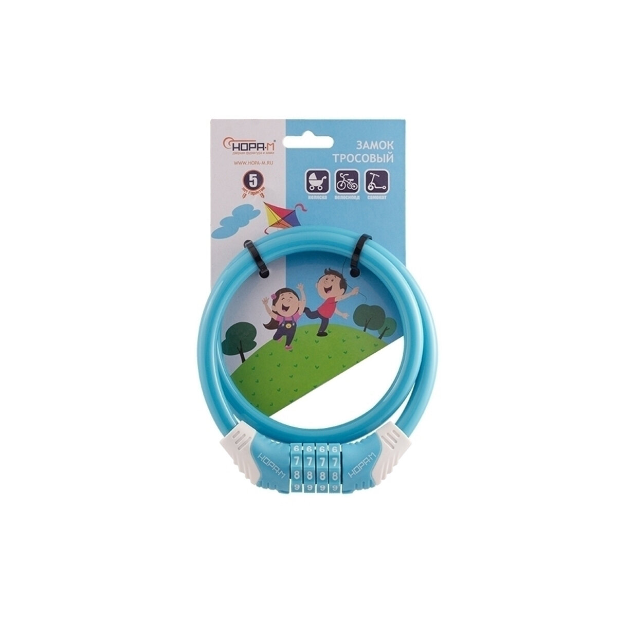 Замок велосипедный кодовый Нора-М №31 10x650 (противоугонный, стальной трос 10мм, длина 65см) - Голубой