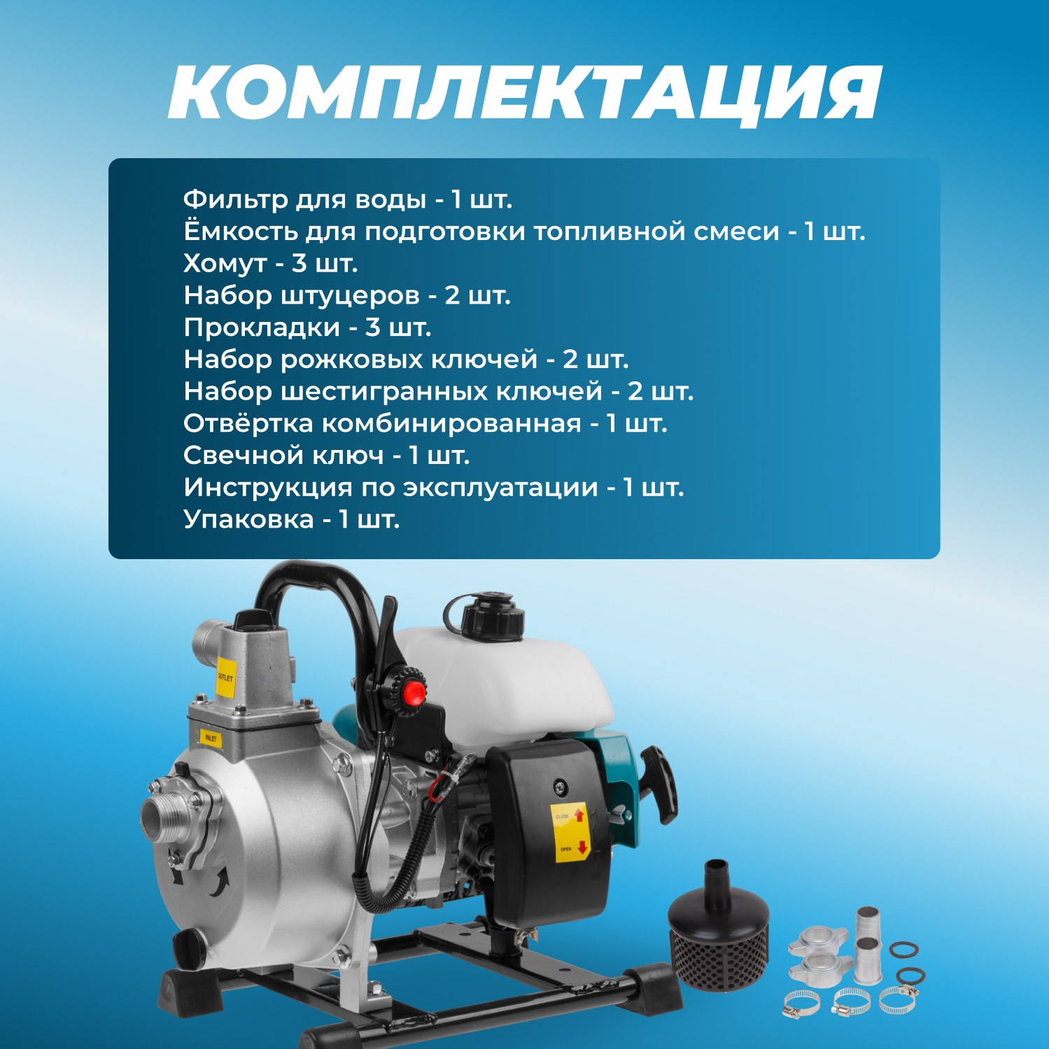 2. Помпа запустилась без проблем на 10-ый рывок стартером(свойственно ндля первого запуска), через два дня запустился с первого рывка. 3. Мощный, лёгкий и мобильный аппарат, в руке держится удобно благодаря развесовки, приятный цвет, выполненная из качественного пластика. |