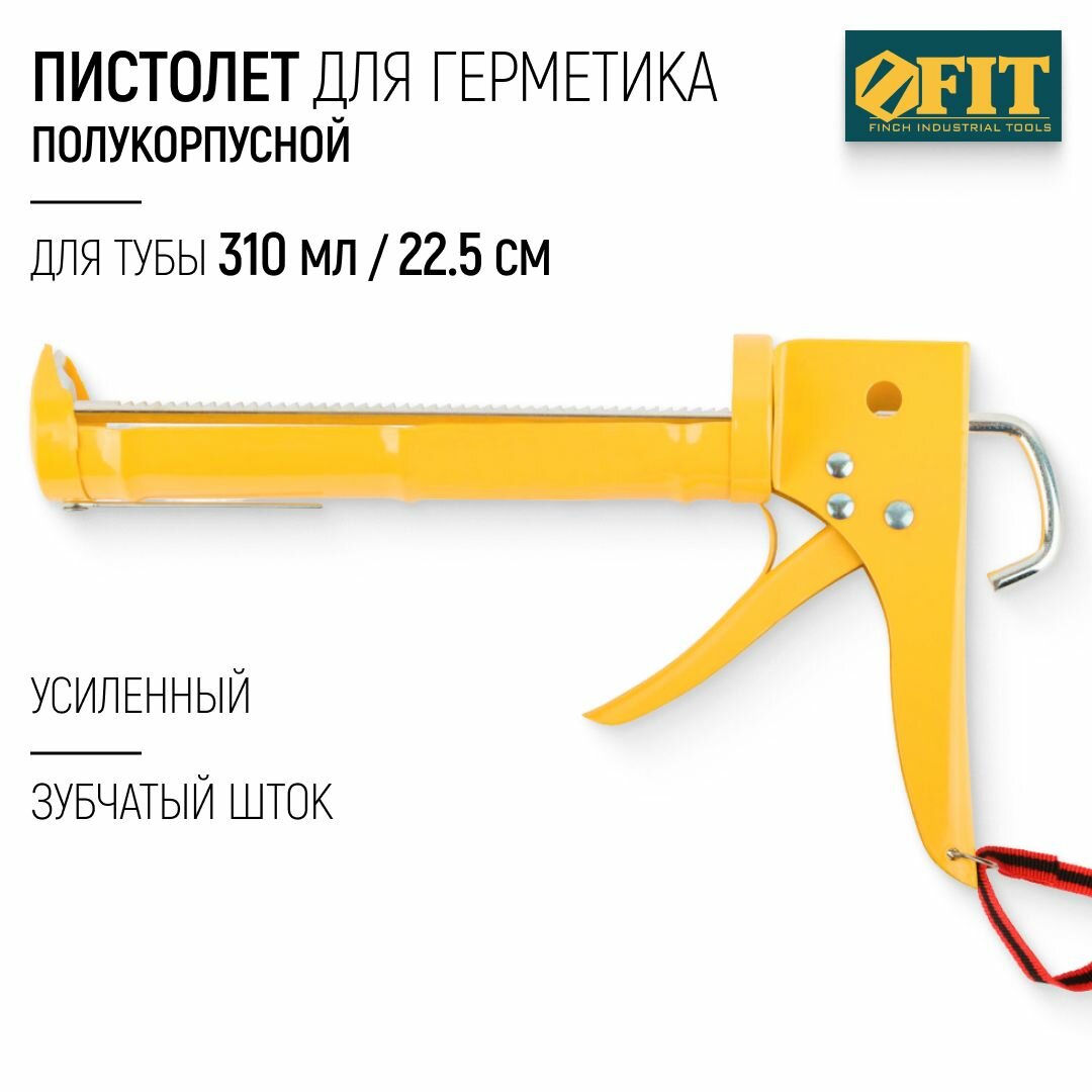FIT Пистолет для герметика 225 мм полукорпусной усиленный, зубчатый шток