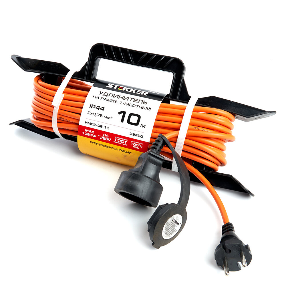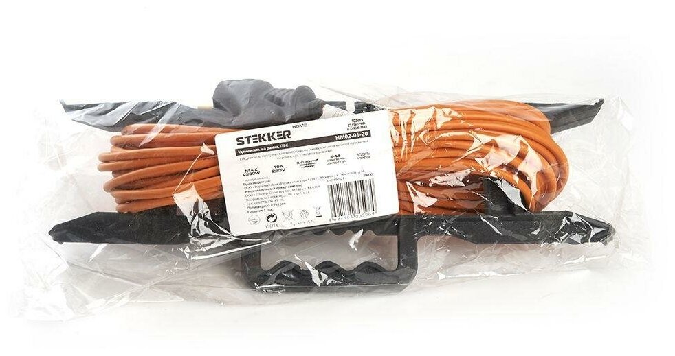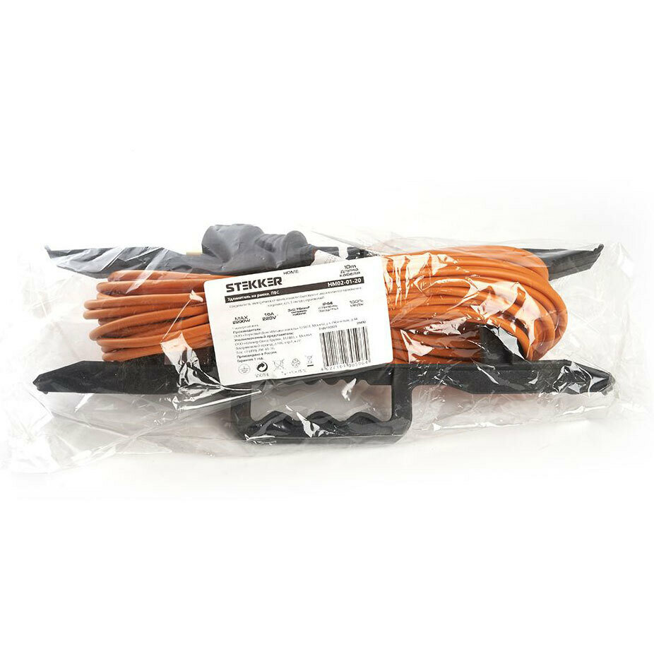 Удлинитель-шнур на рамке 1-местный б/з , HM02-02-10, 10м, 2*0,75, серия Home, оранжевый, STEKKER 39490 (1 шт.)