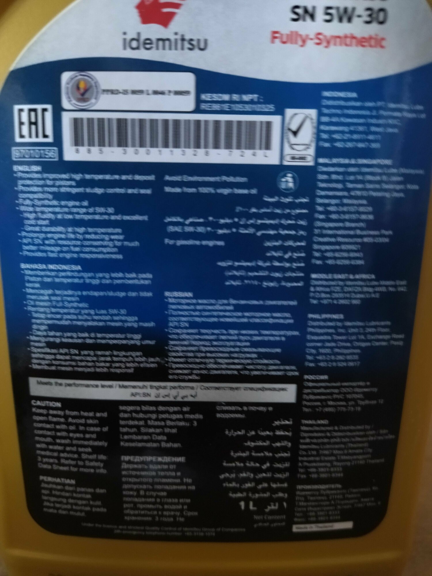 upd. Как и следовало ожидать, представитель IDEMITSU подтвердил что с я.маркет они не сотрудничают, будьте аккуратны при покупке. Сгоряча поставил 1*, а потом подумал, это же не косяк всей линейки масел, а единичный случай. Масло, кстати, при -32 становится уже мёдом, но это 5w, поэтому это допустимо. При выборе масла ОБЯЗАТЕЛЬНО читайте инструкцию по эксплуатации ВАШЕГО автомобиля |