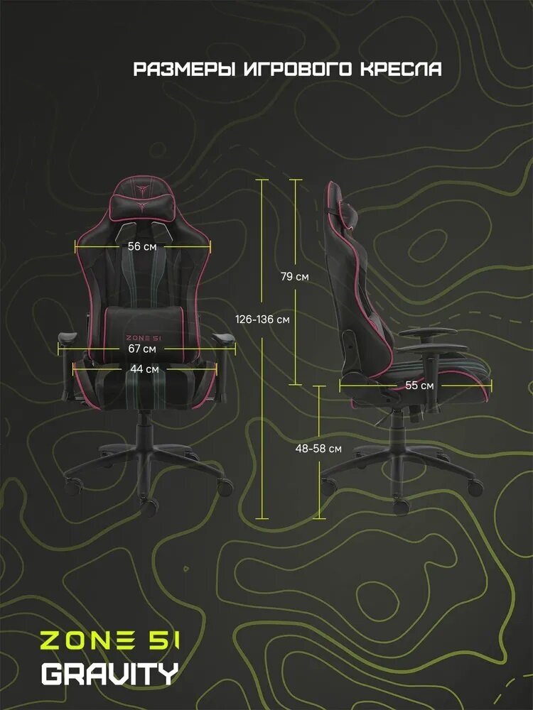 СохранитьКомпьютерное кресло ZONE 51 Gravity игровое, обивка: искусственная кожа/текстиль, цвет: black/pink интересное:
