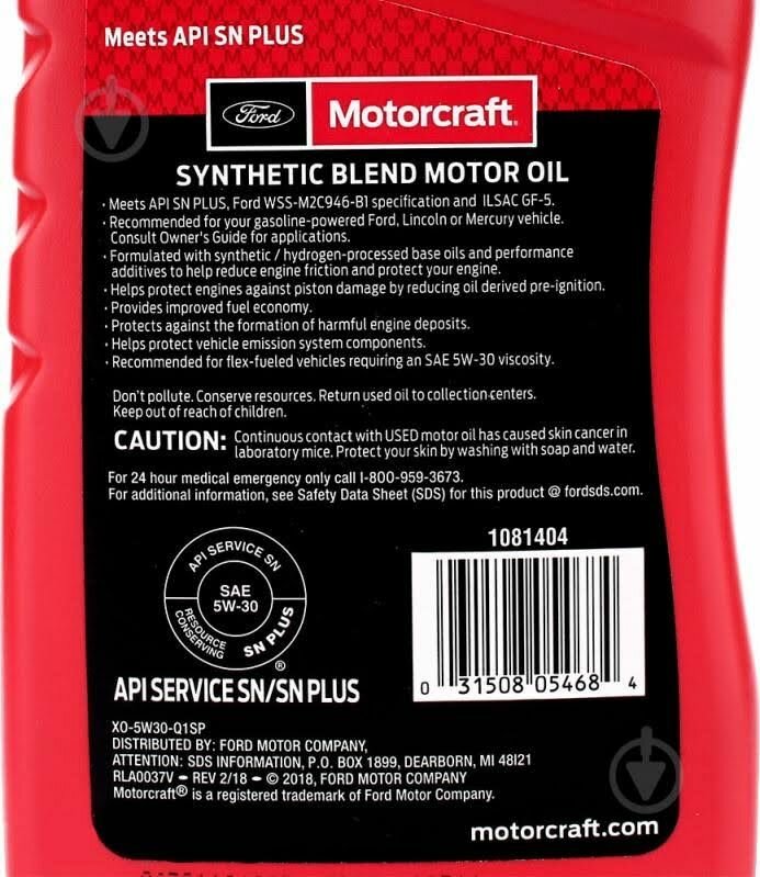Синтетическое моторное масло Motorcraft SAE 5W30 Synthetic Blend, 0.946 л, 1 шт