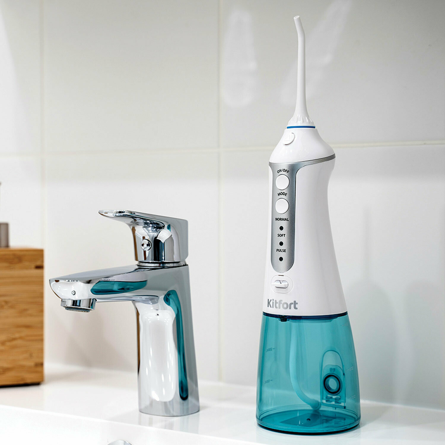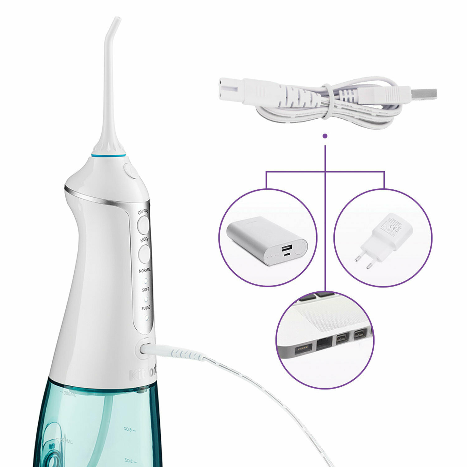 Ирригатор для полости рта KITFORT КТ-2902-1, портативный, емкость резервуара 0,3 л, 2 насадки, белый
