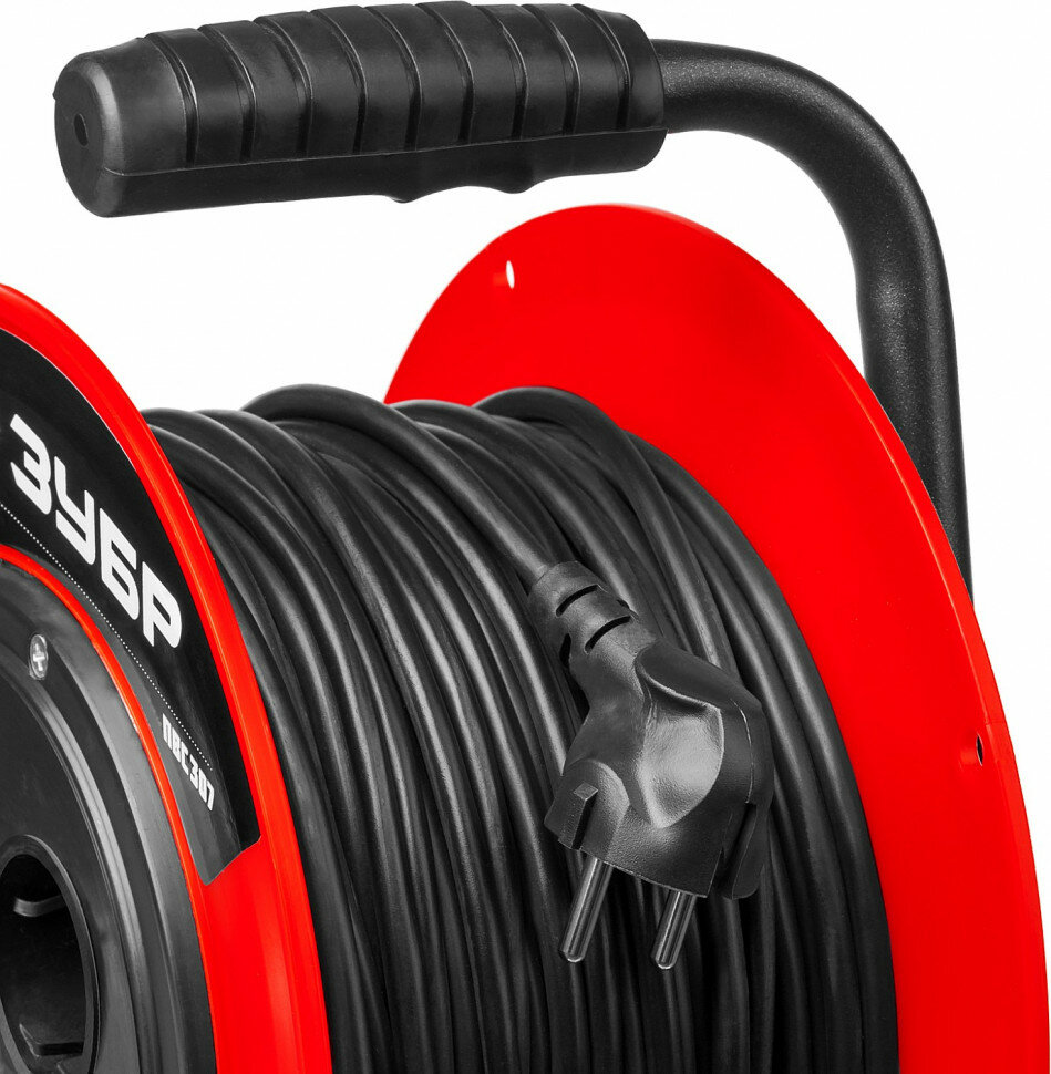 Удлинитель на катушке ЗУБР ПВС 307, 50 м, 2500 Вт, 4 гнезда, ПВС 3х0,75 кв мм, 55083-50