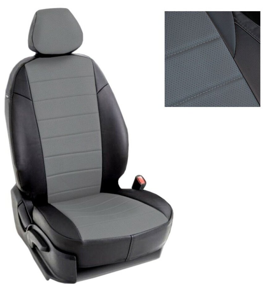 Чехлы из экокожи Seintex для Nissan PATHFINDER III полн компл 2004-2014 (серо-черные, 90311)