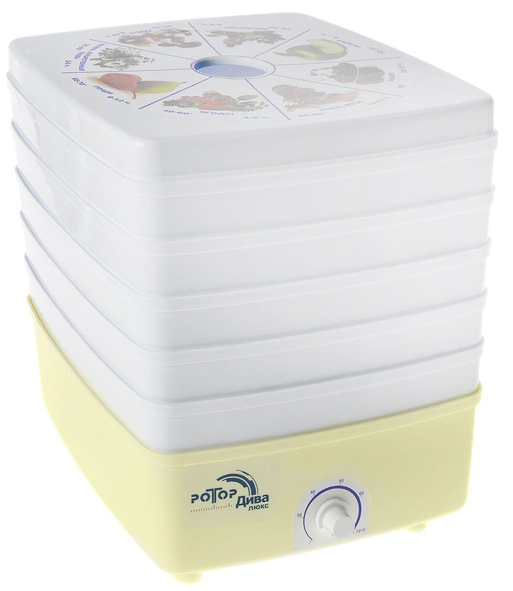 Сушилка для овощей и фруктов "Ротор" Дива-Люкс" СШ-010-02, 520 Вт, 5 ярусов, 17 л, жёлтая