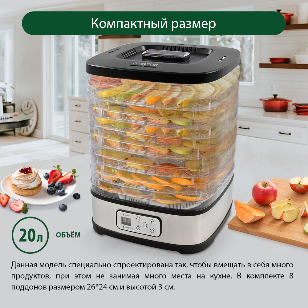 MARTA MT-1875 11 поддонов {8+3} черный жемчуг сушилка д/фруктов,овощей интересное: