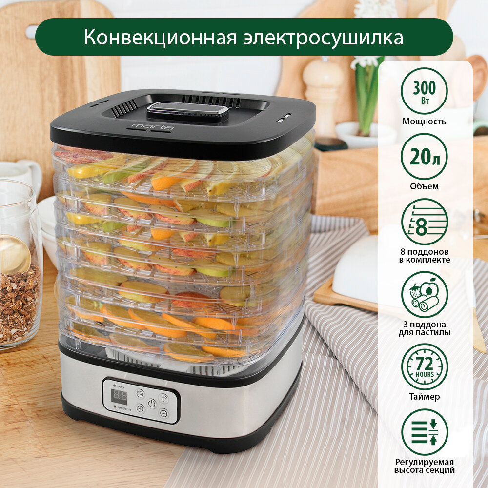 Ниже Вы можете прочитать отзывы на MARTA MT-1875 11 поддонов {8+3} черный жемчуг сушилка д/фруктов,овощей, ознакомится с подробными характеристиками, посмотреть интересные обзоры и фотографии на MARTA MT-1875 11 поддонов {8+3} черный жемчуг сушилка д/фруктов,овощей.