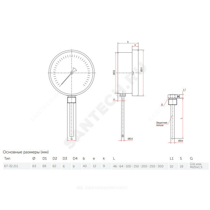 Термометр биметалл БТ-32.211 120С Дк63 L=46 G1/2" рад Росма, росма 00000002443 (1 шт.)
