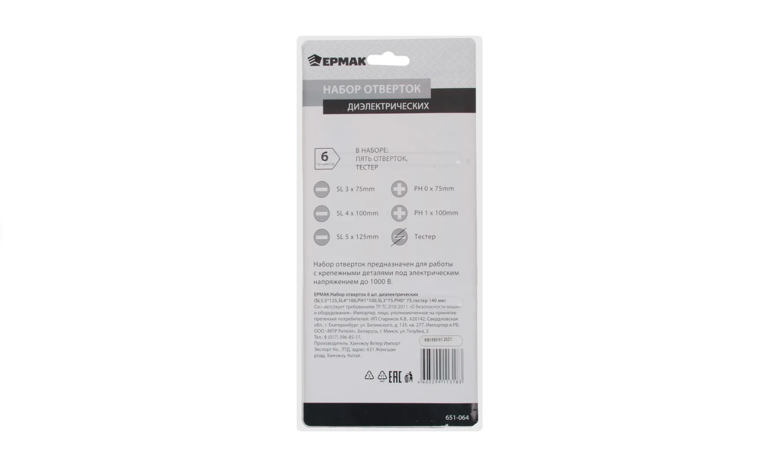 Ниже Вы можете прочитать отзывы на Набор отверток диэлектрических ермак SL5.5*125, SL4*100, PH1*100, SL3*75, PH0*75, тестер, 6 шт, ознакомится с подробными характеристиками, посмотреть интересные обзоры и фотографии на Набор отверток диэлектрических ермак SL5.5*125, SL4*100, PH1*100, SL3*75, PH0*75, тестер, 6 шт.