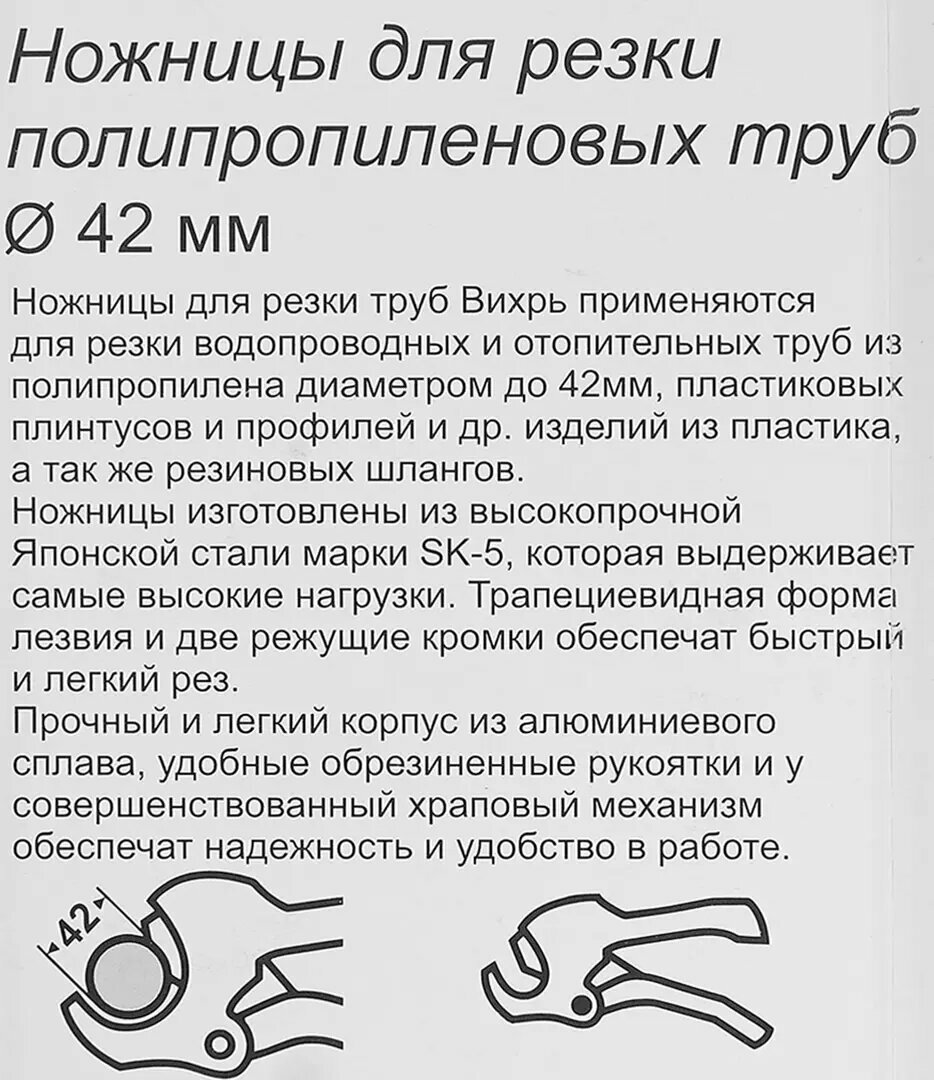 Ножницы Вихрь 260 мм для резки ПВХ труб диаметром до 42 мм интересное: