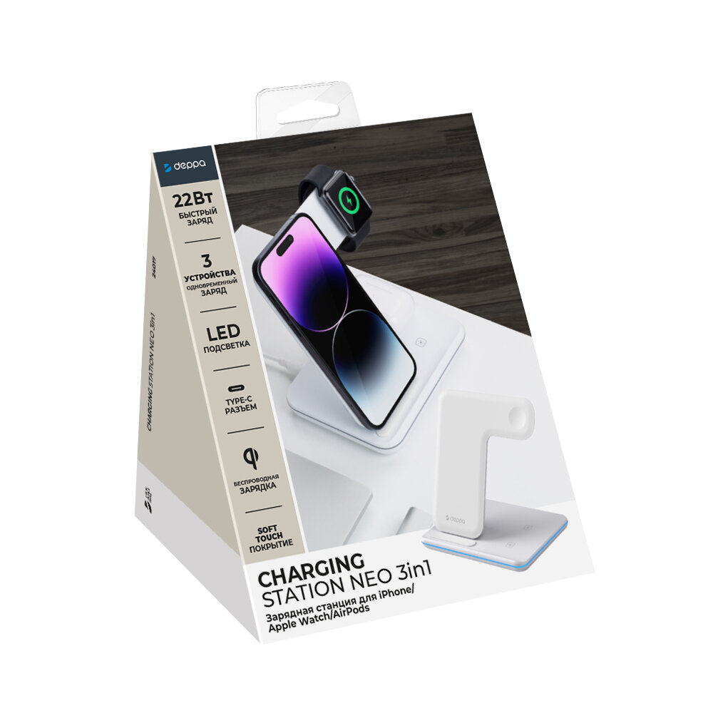 Зарядная станция 3 в 1 Deppa Charging Stand Neo, белый (RU)