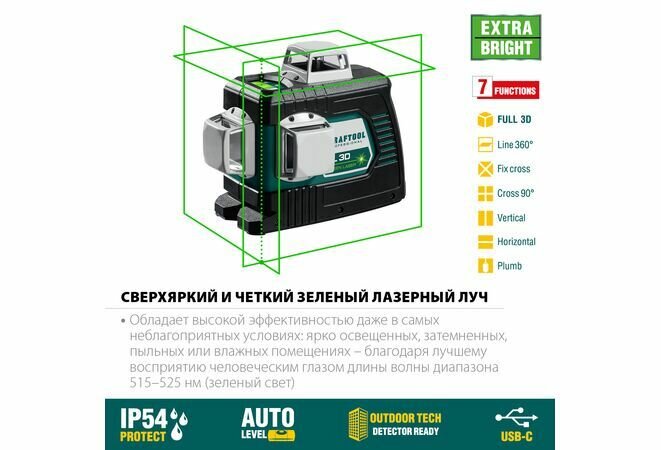 Нивелир лазерный 3D зеленый KRAFTOOL интересное: