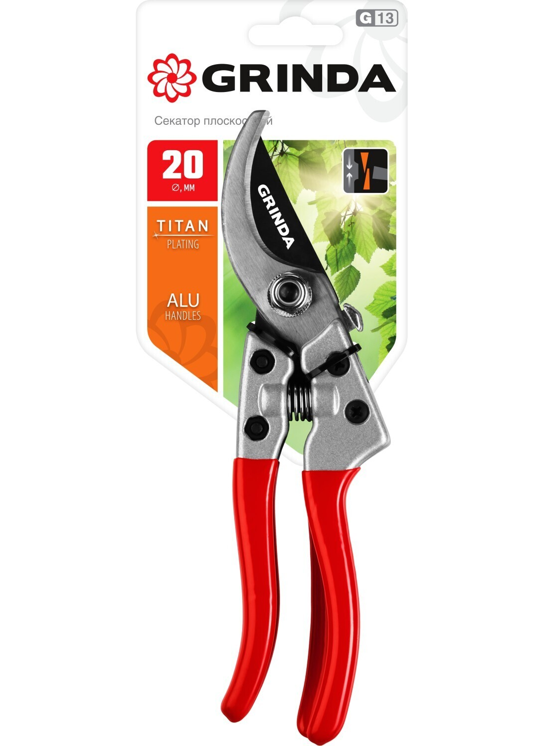 GRINDA G-13, 205 мм, закаленные лезвия, титановое покрытие, алюминиевые рукоятки, плоскостной секатор (423113) интересное:
