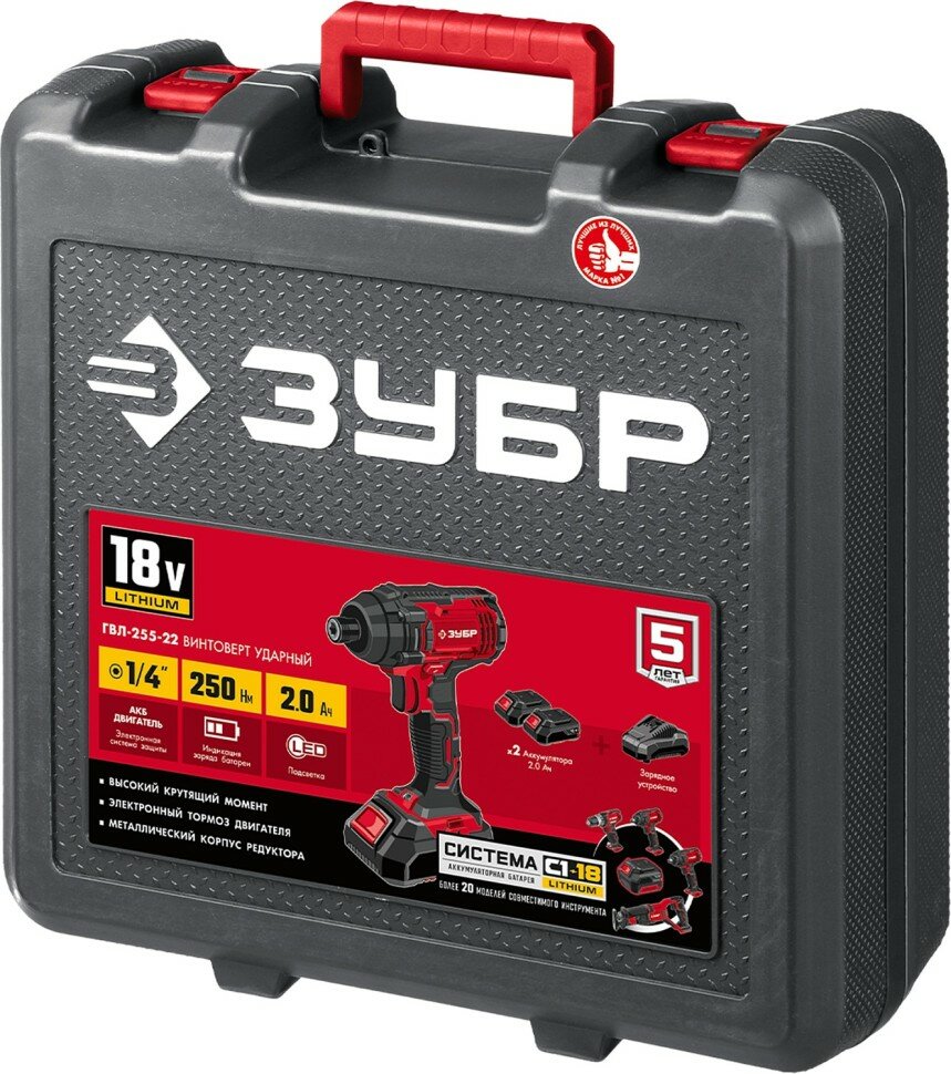 Купить ЗУБР 18В, 2 АКБ (2Ач), в кейсе, винтоверт ударный. ГВЛ-255-22 ( ГВЛ-255-22 )