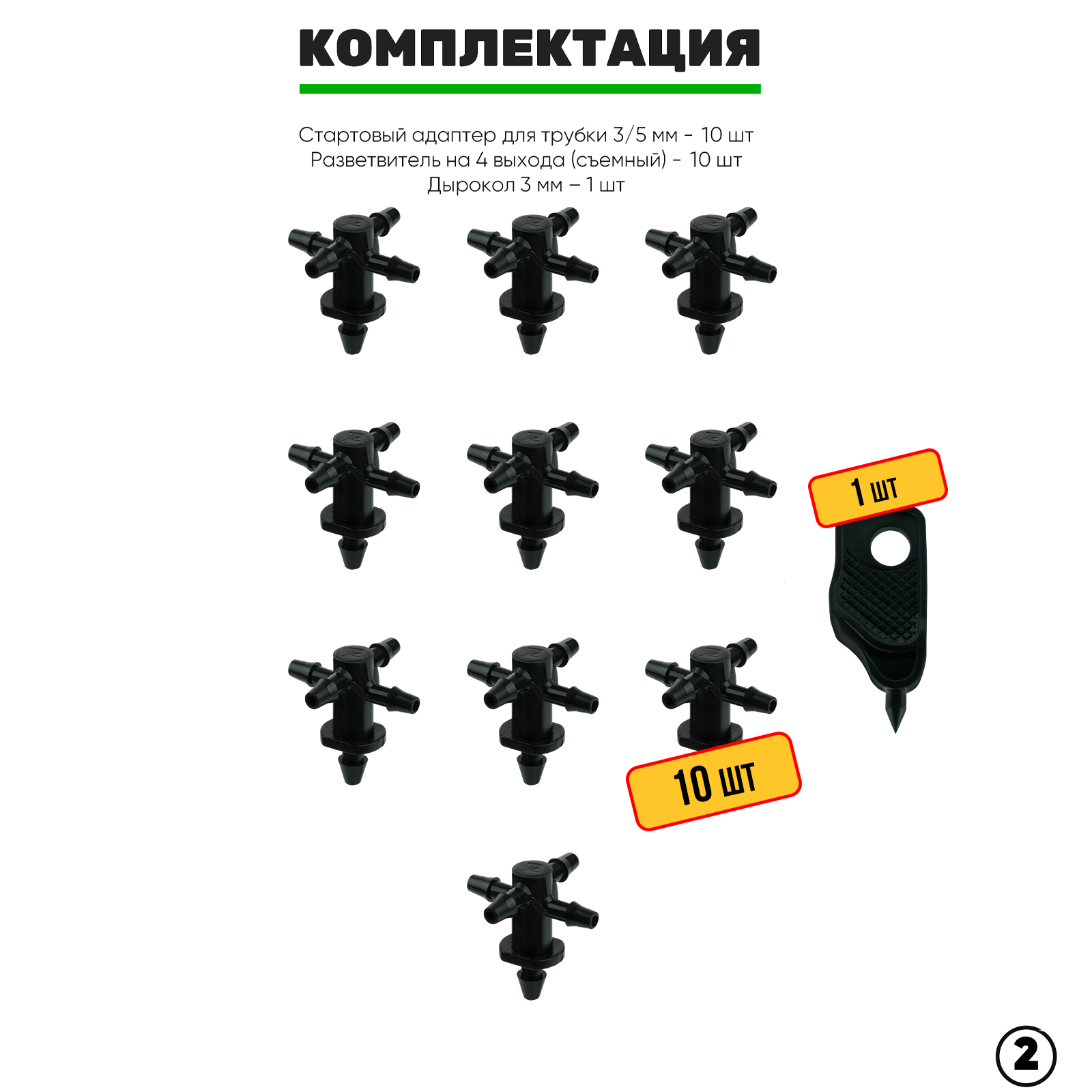 Купить Стартовый разветвитель на 4 выхода для трубки ПВХ 3/5мм (10шт+дырокол)