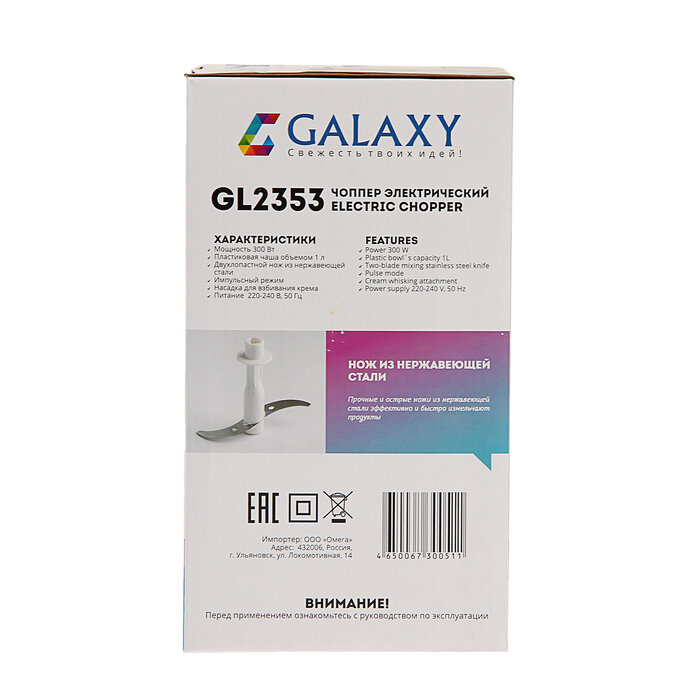 Измельчитель Galaxy GL 2353, пластик, 300 Вт, 1 л, белый интересное: