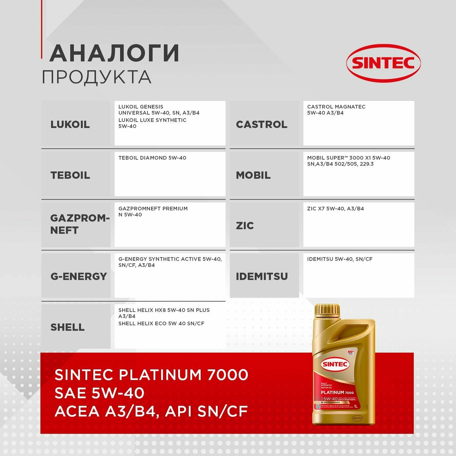 Моторное масло SINTEC Platinum 7000 5W-40 (1л) SIN-5W40-A3B4-1L
