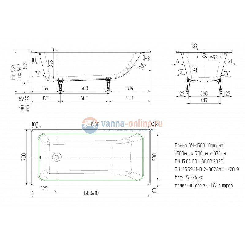 Ванна отдельностоящая Универсал Оптима 150х70, чугун интересное: