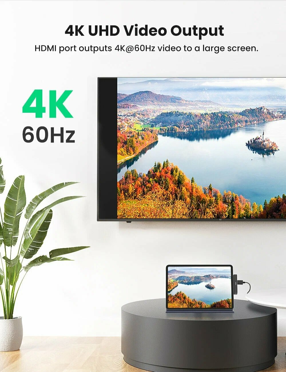 Хаб (разветвитель) UGREEN , 2 x USB 3.0, HDMI, 3,5 мм jack, PD
