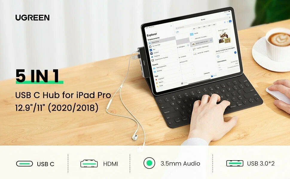 Концентратор UGREEN USB для iPad Pro (хаб), 2 x USB 3.0, HDMI, 3,5 мм jack, PD (70688)