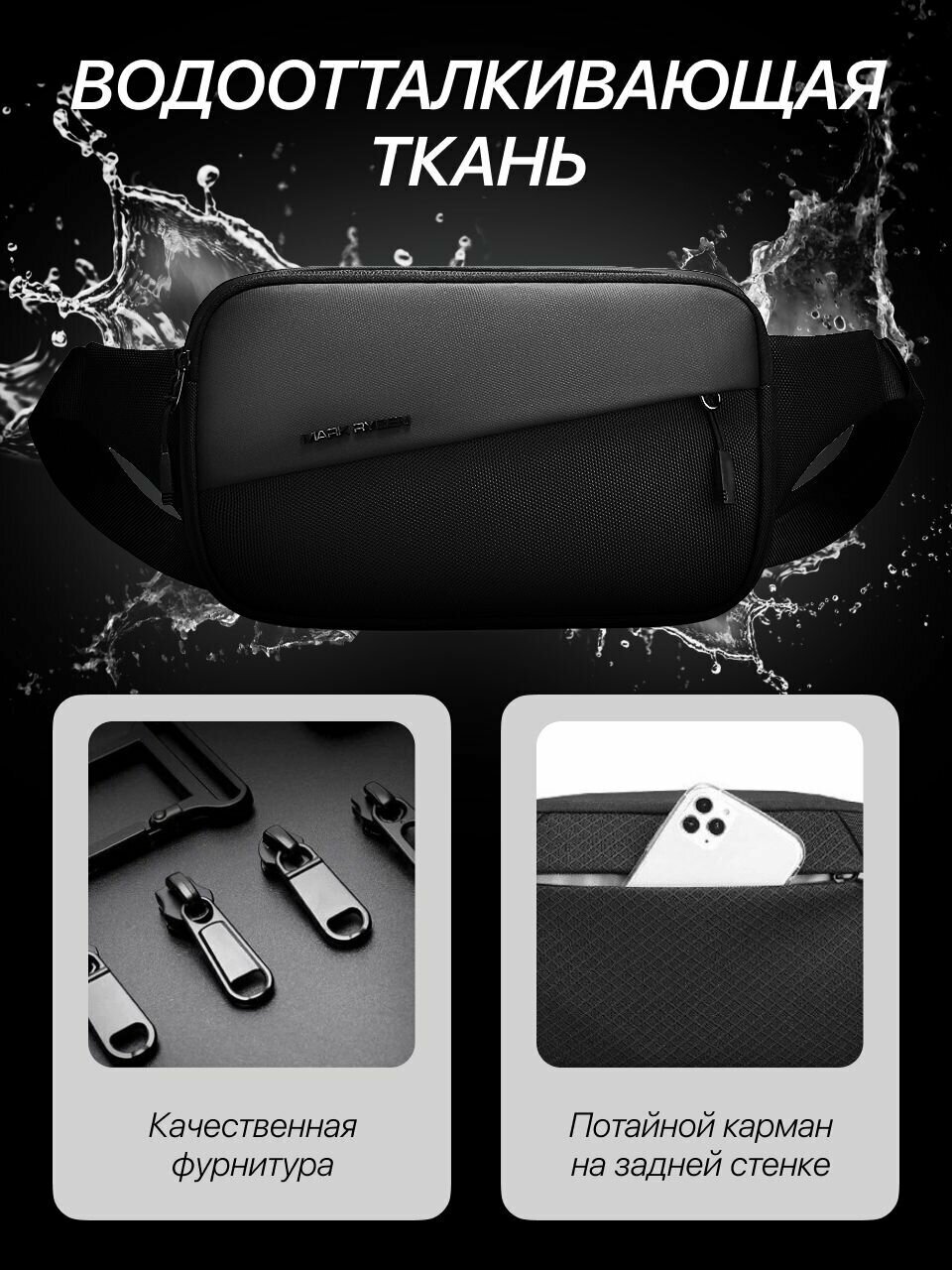Сумка мужcкая через плечо MARK RYDEN MR8112. Поясная сумка спортивная, барсетка мужская, сумка кросс боди, сумка бананка для мужчин и подростков, спортивная, корпоративные подарки на Новый Год, распродажа черная пятница