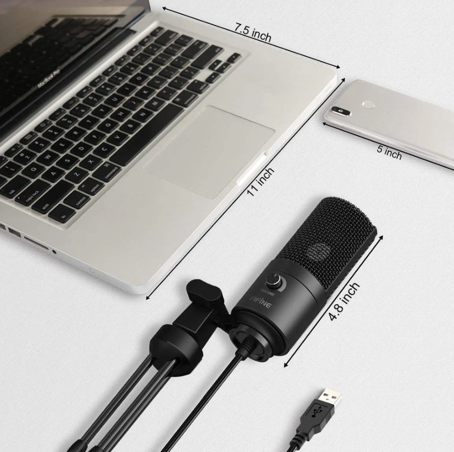 Микрофон FIFINE K669 (чёрный, на штативе, USB 5V, 20Hz-20kHz, -34dB±30% (1kHz), S/N 78dB, шнур 1.8 м, рег. громкости)