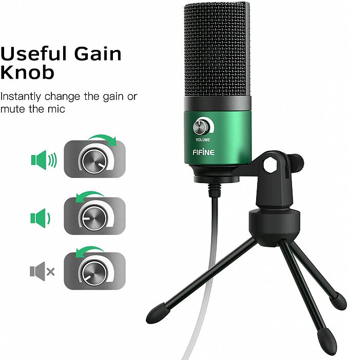 СохранитьКонденсаторный микрофон для компьютера Fifine K669 (Green) интересное: