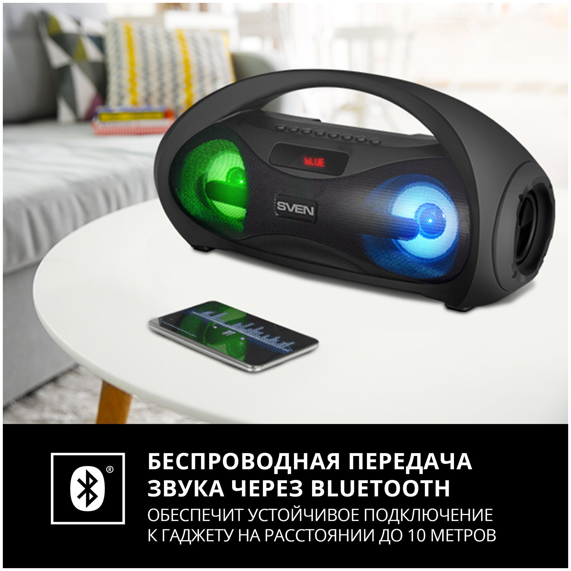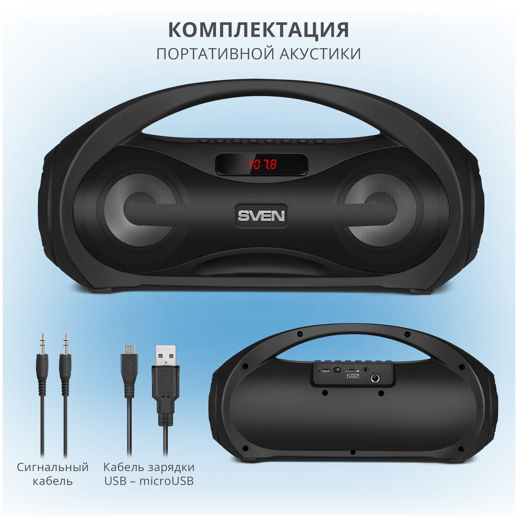 АС SVEN PS-425, черный (12 Вт, Bluetooth, FM, USB, microSD, LED-дисплей, 1500мА*ч)