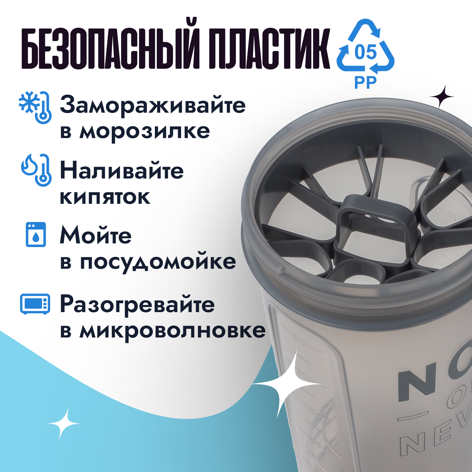 Шейкер спортивный с венчиком и сеткой 600 мл для спортивного питания протеина VOTTLER