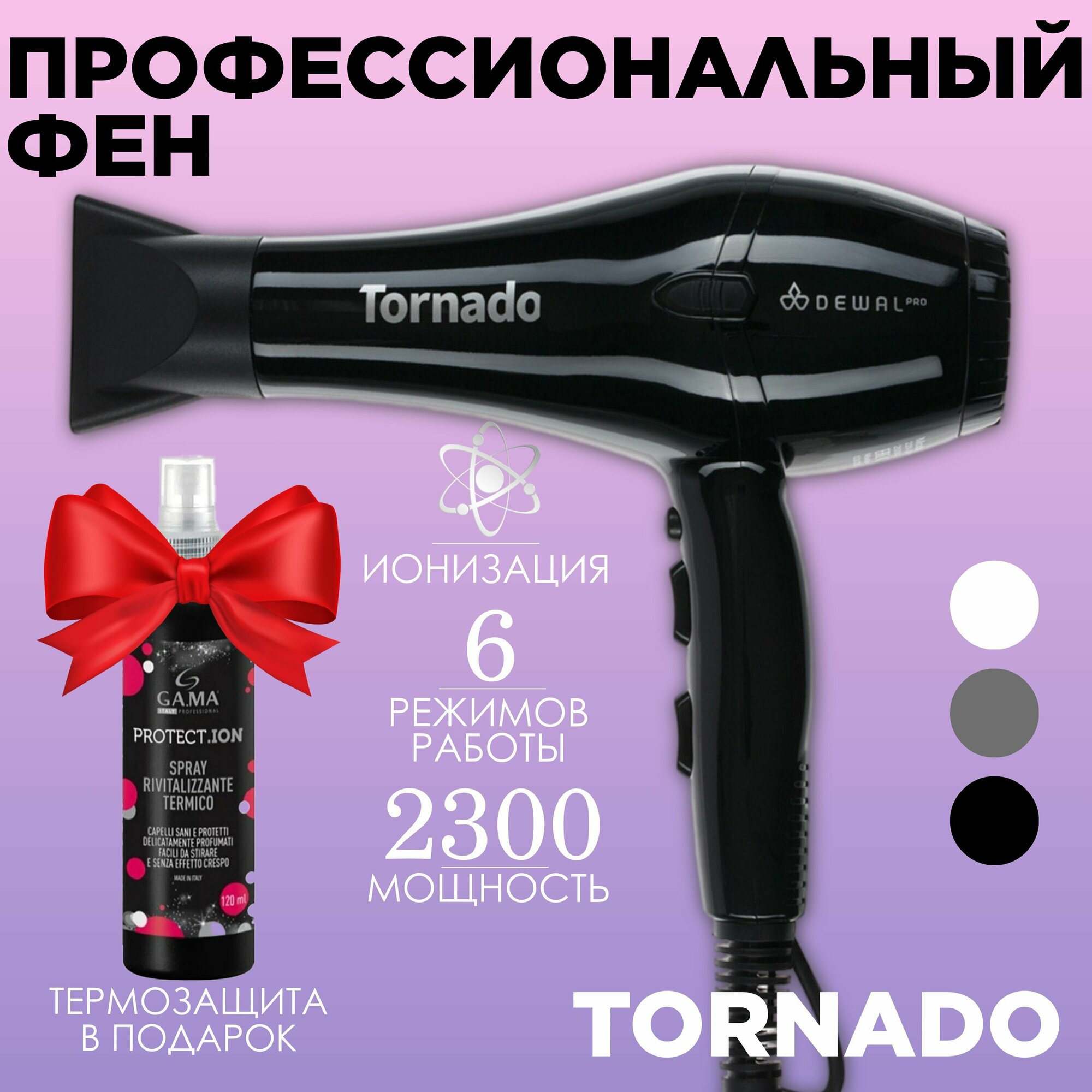 Профессиональный фен для волос чёрный Tornado 03-8010, 2300 Вт. Dewal