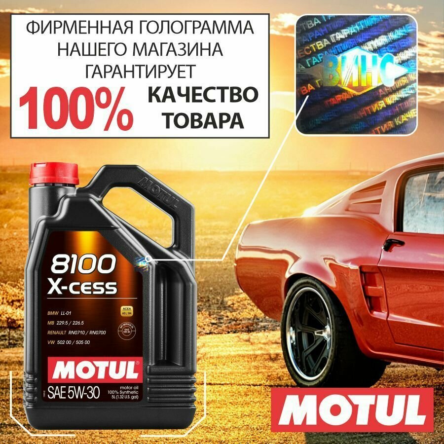 Моторное масло Motul 8100 X-cess A3/B3/B4, синтетическое, 5W-30, SL, 5 л
