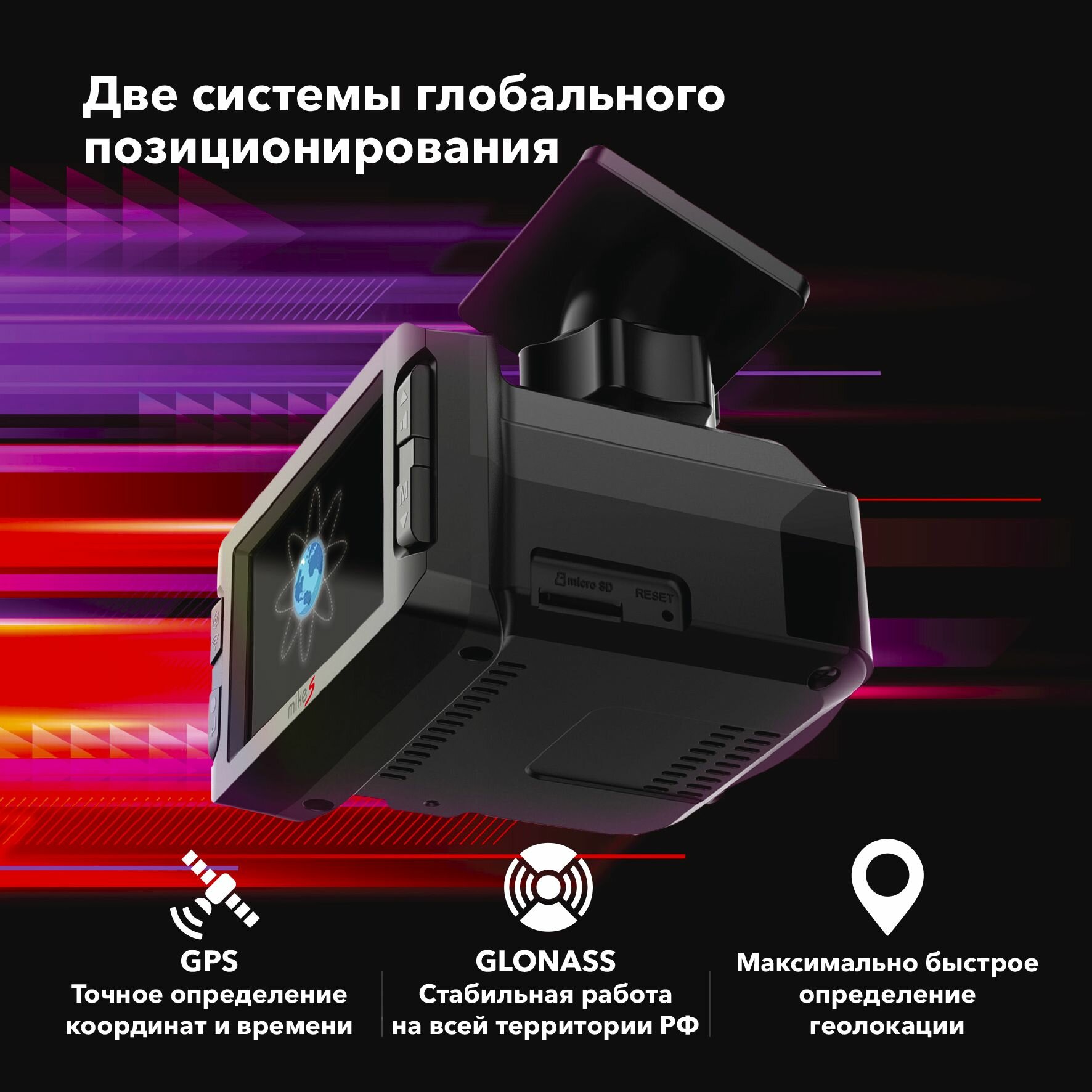 Видеорегистратор с радар-детектором Inspector Mike S, GPS, ГЛОНАСС, черный