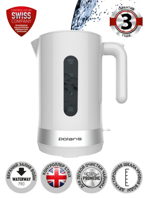 Чайник Polaris PWK1803C белый, water way pro 1850/2200Вт, 1,8л., Strix