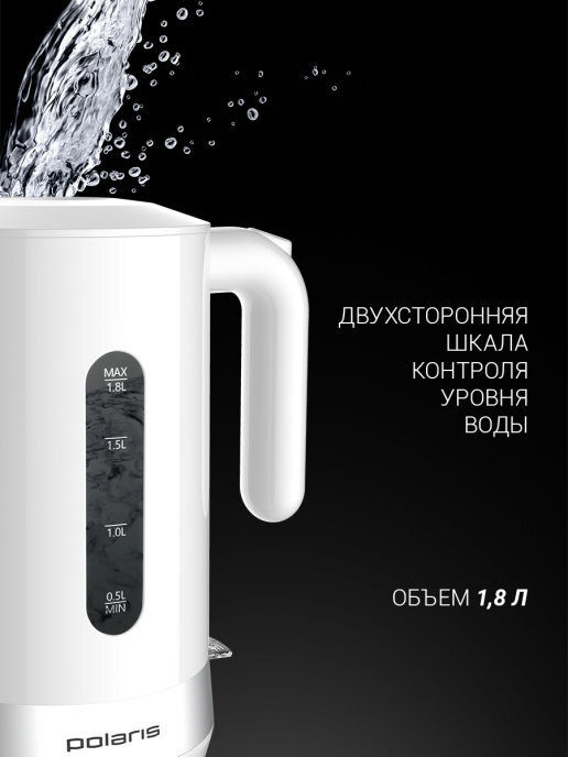 Чайник Polaris PWK 1803C Water Way Pro , пластик Черный PWK 1803C .