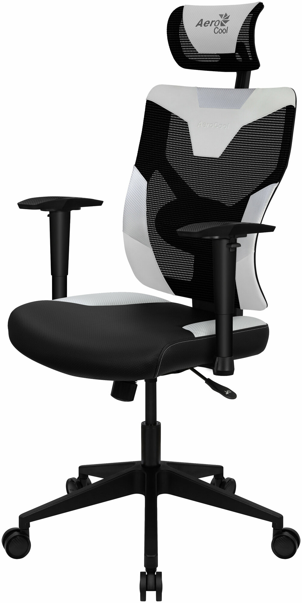 Кресло игровое AEROCOOL Guardian, на колесиках, искусственная кожа/сетка, черный/белый [guardian azu