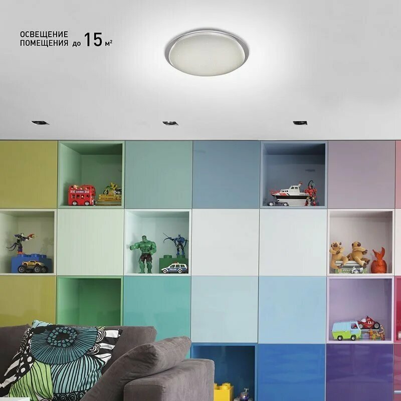 | Плюсы: | Отличный светильник. Просто устанавливается, ярко светит. Для комнаты в 20 кв.м. яркости больше, чем нужно. Удобно управлять яркостью с пульта, хороший диапазон от холодного до теплого. Интересная функция с цветами RGB |