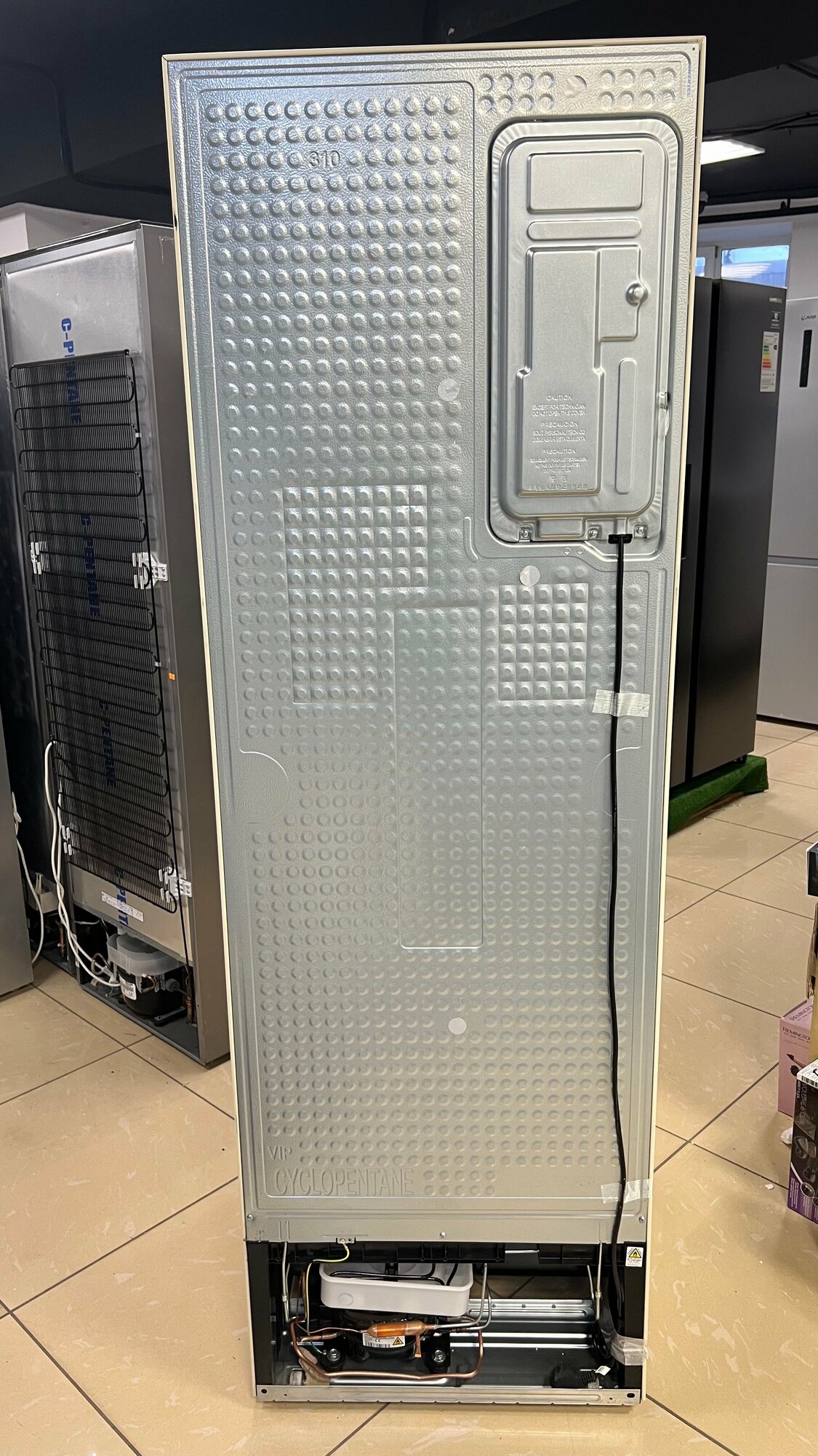 2. В начале хочу сказать, не включайте его как только привезете домой, он должен постоять на одном месте без каких-либо колебаний с места на место" примерно часов 12, тогда и работать будет нормально как только на рабочий режим выйдет. 3. Сзади где находится поддон для конденсата есть черная трубка завитая, на ней что-то вроде поролона который приклеен бумажным скотчем. Вы это дело не отклеивайте, это антивибрационная "прокладка". Такой ответ мне дали и в тех. поддержке и мастер из авторизованного сервисного центра и в руководстве по эксплуатации нет об этом ни слова (значит снимать не нужно). 4. Приезжал мастер из авторизованного сервисного центра, за доп. плату перевесил дверцы холодильника (открывались слева направо) |