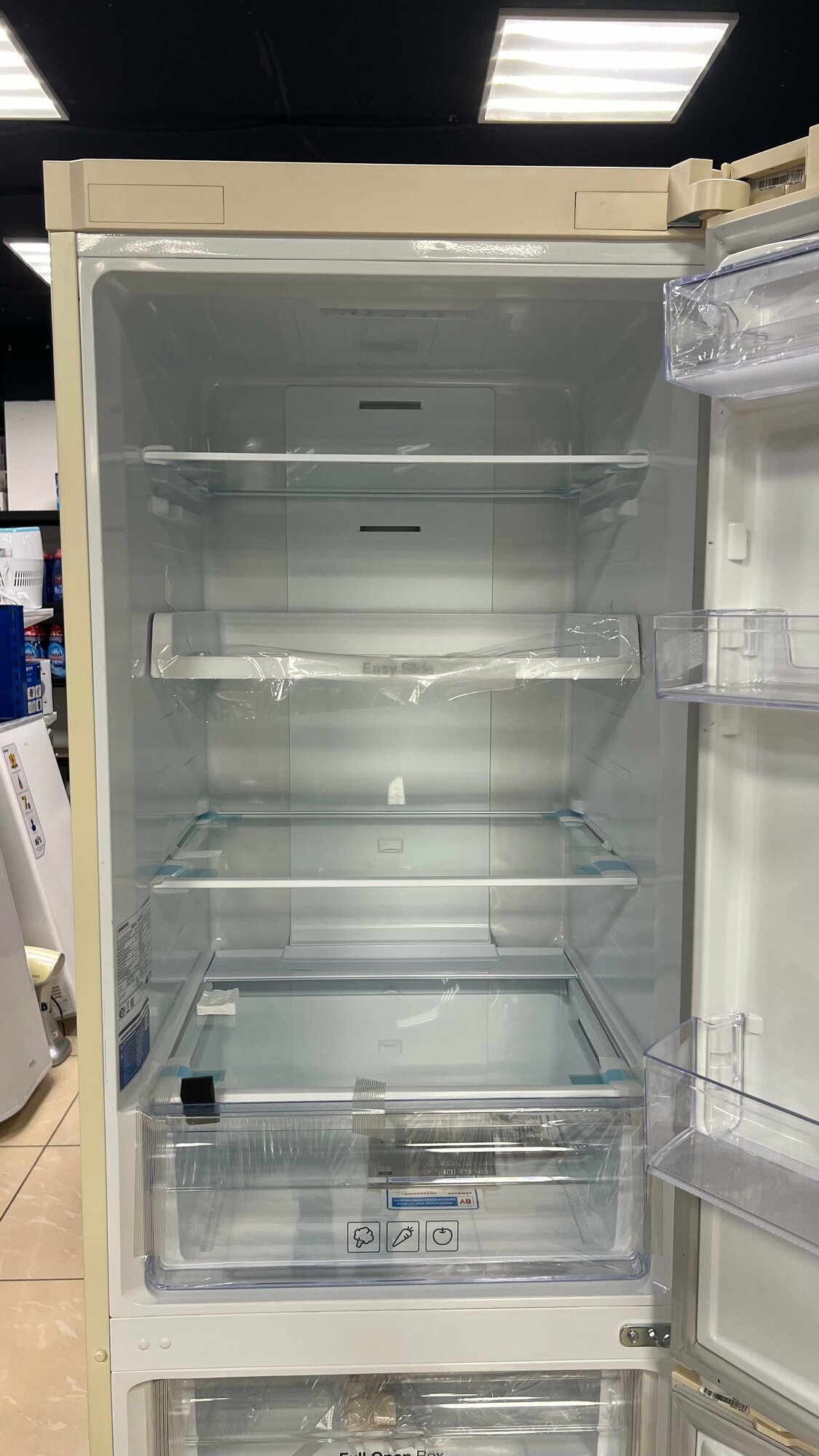 2. Полок достаточно, но именно из-за этого не поставить на полки бутылку 1л. (сок например). С другой стороны, нет проблем, сними полку и всё влезает прекрасно. 3. Еще из минусов производство - "Узбекистан". Против узбеков ничего против не имею, но лучше бы Европейская сборка была. |